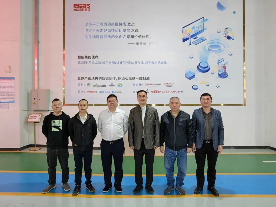 11月18日,广东省家具协会会长王克前往协会副会长单位迪欧家具集团,就广东家具行业“十五五”发展规划、数字化转型、智能制造等进行调研,受到迪欧家具集团董事长黄寿金、董事副总裁黄雅悠、董事副总裁黄云林的热情接待。双方围绕议题展开深入交流。