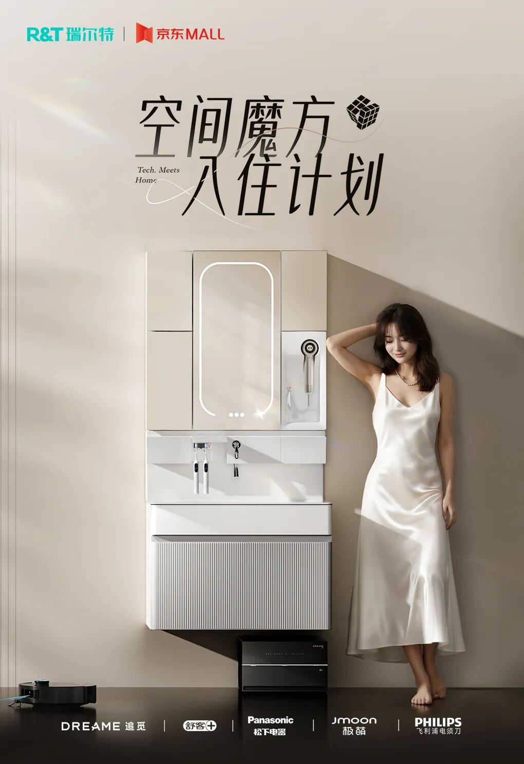 携手生态伙伴,共创未来生活新秩序“空间魔方入住计划”不仅是“1+N”的资源融合,更是一次关于未来生活方式的共同探索。瑞尔特与京东联合追觅、舒客、松下电器、极萌、飞利浦等知名品牌,打破品类边界,围绕“效率、健康、美学”三大核心,为用户提供真正一体化、可成长的智慧卫浴解决方案。