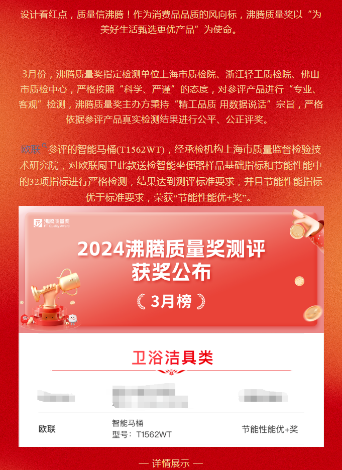 卫创新而来,欧联智能产品再夺沸腾质量奖