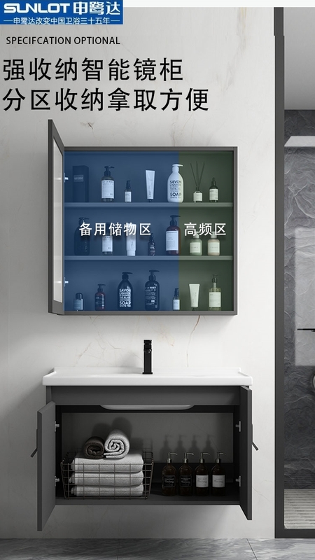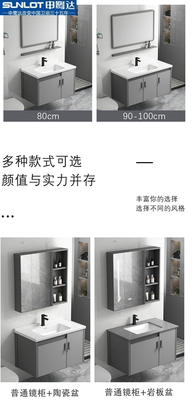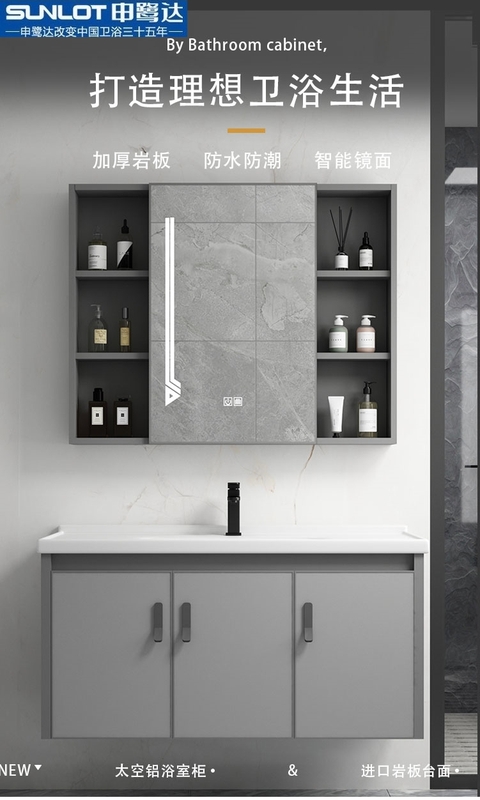 申鹭达旗舰店太空铝浴室柜一体盆陶瓷组合岩板洗脸洗手盆卫生间洗