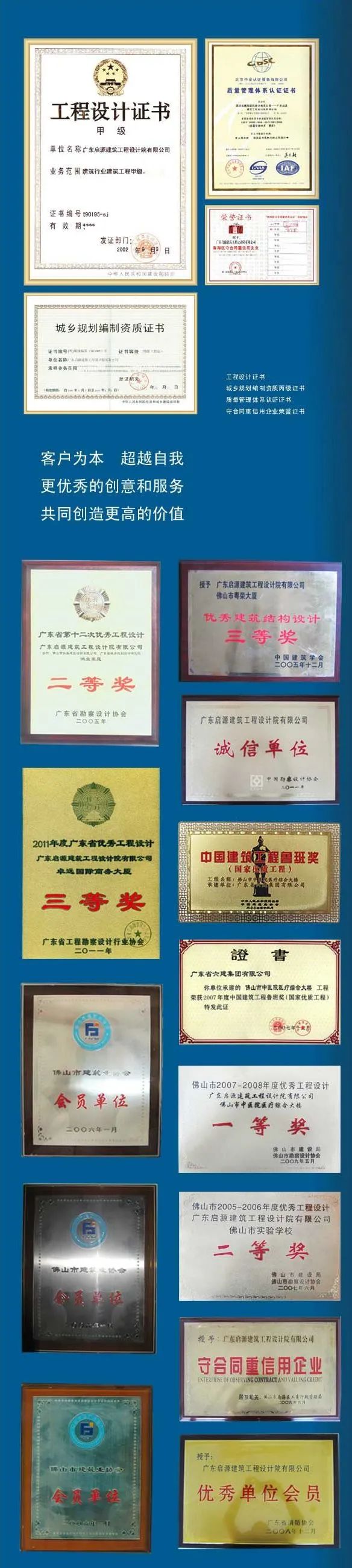 广东启源建筑工程设计院有限公司,成立于1990年,注册资金300万元,办公地址在南海区桂城鸿晖都市产业新城,办公面积为2700平方米。我司具有甲级建筑行业(建筑工程)设计资质,乙级城乡规划编制资质。2011年经中国勘察设计协会评估审定为全国建筑设计行业诚信单位。公司有专业技术人员140余人,其中教授级高级工程师4人,高级工程师22人,工程师70人,一级注册建筑师10人,一级注册结构师4人,公用设备注册师6人,注册城市规划师2人,注册土木工程师(岩土)2人,注册造价师1人。1999年通过质量管理体系认证。在上海、湖南、广西、广州、珠海、东莞、惠州等地设有分公司。凭借雄厚的技术力量和全方位、全过程的优质服务,赢得了良好的社会信誉。