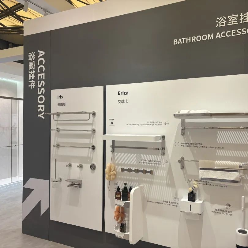 以定制淋浴房、全景移门、水槽排水、地漏、挂件为核心,展现空间定制的无限可能,为个性化卫浴解决方案树立行业标杆。
